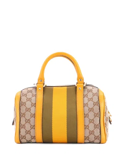 Pre-owned Vintage Web Boston Bag Gg Canvas Small Satchel In Brown