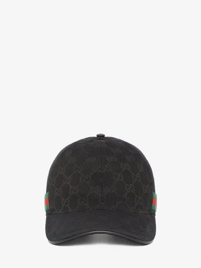 Cappello da baseball in tessuto Original GG nero con nastro Web verde e rosso e profili in pelle nera. Chiusura regolabile con velcro sul retro.Taglia UNI