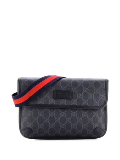 Pre-owned Web Flap Gg Coated Canvas Belt Bag In Black