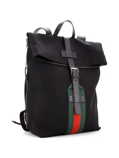 Pre-owned Web Fold Over Techno Canvas Medium Backpack In Black