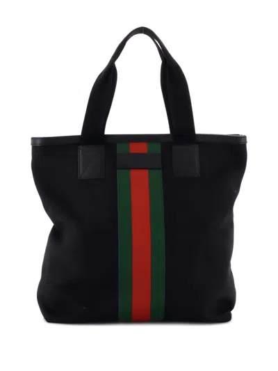 Pre-owned Web Shopping Techno Canvas Large Tote Bag In Black
