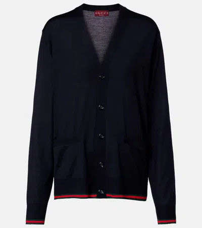 GUCCI Web Stripe Wool Cardigan In Multi