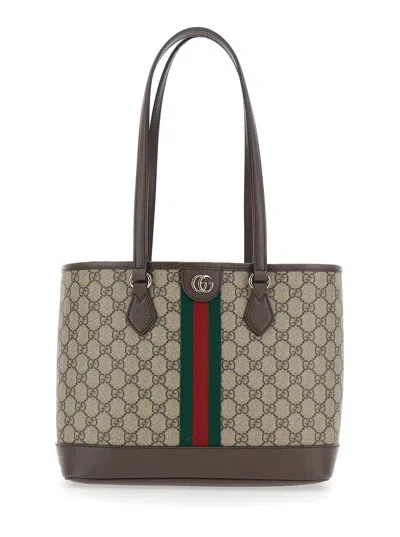 Women 'ophidia' Beige Shopper With All-over Gg Motif And Metallic Logo On The Front In Fabric In Multi