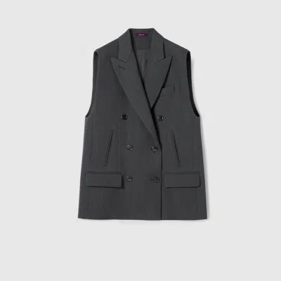 The Cruise 2026 women's ready-to-wear collection celebrates the Gucci wardrobe, blending archival influence with the history of Florence in a playful mélange, ranging from the minimal to the maximal. Crafted from wool, this vest is enriched with a Web insert. Dark grey wool Web insert, Lined, Sleeveless, Double-breasted, Chest pocket, Front pockets, Front button closure, Length: 28.7" based on a size 40 (IT)