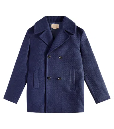 Material: 79% wool, 12% polyamide, 8% polyester, 1% silk. Care instructions: dry clean. Made in Italy. Designer color name: Blue/Mc. Closure: double-breasted buttoned front. Pockets: side slit pockets. Lining: 100% viscose.