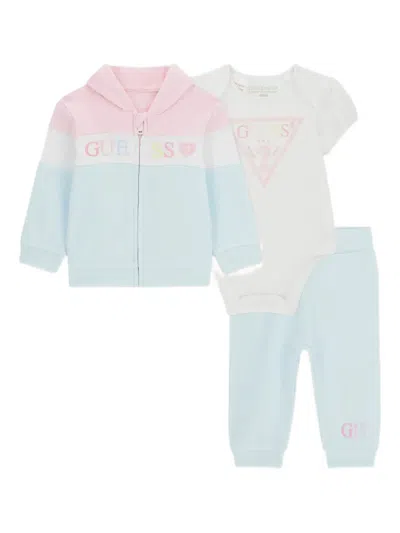 blue, pink and white multicoloured logo light-blue trousers zip-up hoodie pastel colour-block design short-sleeved bodysuit set of three