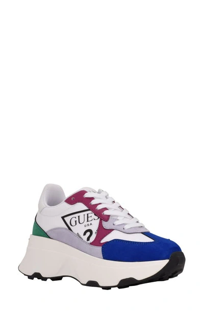Logo detailing heightens the sporty-chic style of a lace-up sneaker set on a platform sole.