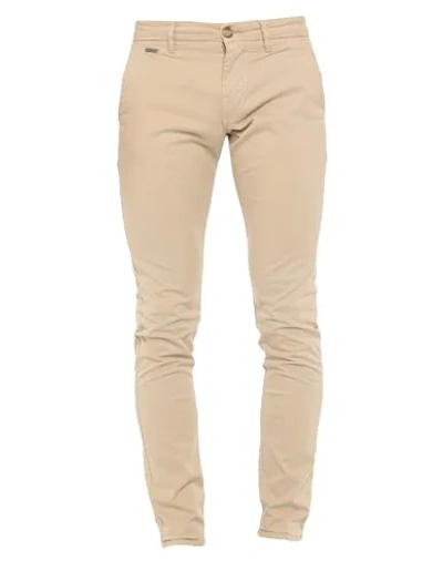 twill, brand logo, solid color, mid rise, belt loops, straight leg, slim-leg pants, zipper closure, 1 button, multipockets, stretch , Color: Beige , Size: 30W-32L