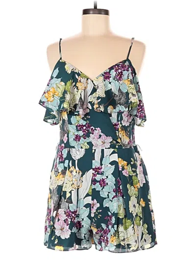 Guess Romper, Size: Medium. Item Details: Teal, Floral Pattern, Cold Shoulder Neckline, Flared Leg, Sleeveless, Ruffles, Women's Dresses