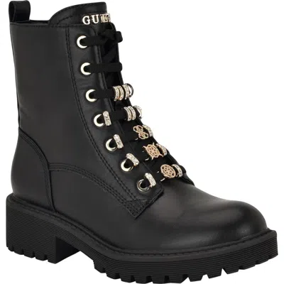 The Guess Fionaa brings a charming trendy twist to a classic combat style. Featuring an inside zipper, these laces are embellished with gold charm hardware to accessorize this boot. Est. 1981, Guess is a global lifestyle brand and a symbol of a young, adventurous lifestyle.