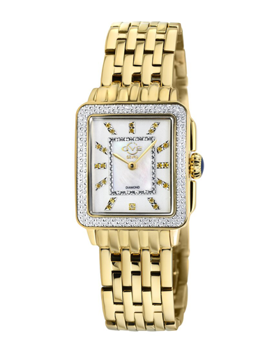 About The Brand: Innovative Timepieces To Add To Your Collection. Swiss Quartz Movement Gold Stainless Steel Bracelet Deployment Buckle Clasp 316L Stainless Steel Bezel Encrusted With Blue Spinel And Diamonds = 0.0116 Ct. Tw.; Color = F-G; Clarity = Vs316l Stainless Steel Case Anti-Reflective Sapphire Crystal Push Pull Crown Mother-Of-Pearl Dial Diamond & Gemstone Hour Markers Date Display Case: 27Mm X 30Mm X 9.5Mm Bracelet/Strap: 18Mm Wide X 6.5In Long Water-Resistant Up To 50 Meters Manufacturer's Limited Warranty It Is Customary To Treat Most Gemstones To Achieve Enhanced Color And Durability. Some Of These Treatments May Not Be Permanent, And May Require Special Care. Made In Switzerland