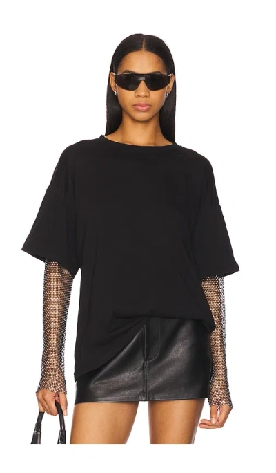 H2OFagerholt LE T恤 – 黑色 - Black. 尺码 M (also – S, XS). 100% 有机棉花. 冷水手洗. 分层款式. Sheer embellished mesh sleeves. 中磅汗布面料. H2OR-WS18. FA900531-1.