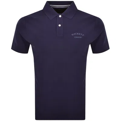 Hackett Heritage Essential Polo T Shirt In Ink Blue Classic Fit. A two branded button placket a ribbed polo collar and ribbed cuffs on the short sleeves. The signature Hackett logo is printed on the left of the chest. Side vents at the hem. 100% Cotton.