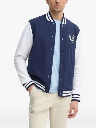 HACKETT Logo-patch Bomber Jacket In Blue
