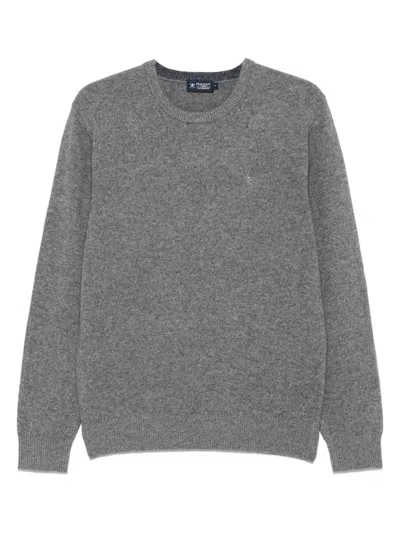 battleship grey ribbed trim embroidered logo at the chest crew neck