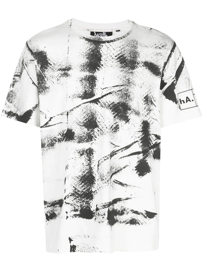Black and white cotton hand painted T-shirt from Haculla featuring a round neck, short sleeves and a straight hem.