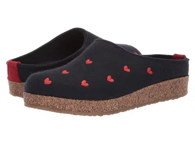 Haflinger Cuoricini - Women's Shoes : Navy : You will fall in love with the Haflinger Cuoricini slipper clog. Wool felt upper features decorative hearts at the vamp for added fun. ; Warm wool-covered footbed is sure to massage your foot with each and every step. ; Anatomically correct, wool-covered cork and latex midsole molds to your foot for a cozy and customized fit. ; Lightweight rubber traction sole with a rocker heel offers reliable grip on a variety of surfaces. ; Imported. Measurements: ; Weight: 10 oz ; Product measurements were taken using size EU 39 (US Women's 8), width B - Medium. Please note that measurements may vary by size. | Haflinger Cuoricini Women's Shoes Navy : EU 42 (US Women's 11) B - Medium, Wool