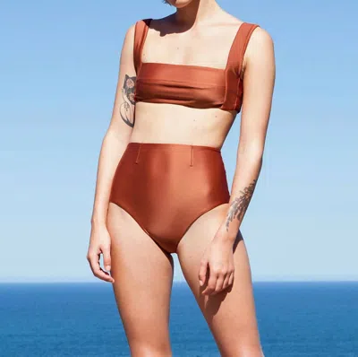This cute and flattering swimsuit is perfect for making a splash at the pool, lounging on sun-kissed beaches, and staying stylish throughout the upcoming summer season.The Amanda Bikini Set by Haight, in a luxurious mocca color, offers a sophisticated silhouette with its bandeau top and high-waisted brief. Made from a blend of polyamide and elastane, this swim set guarantees a comfortable and flattering fit. The top is designed with wide shoulder straps and secures at the back with three small black buttons. For care, hand wash this solid swim set to maintain its chic style.