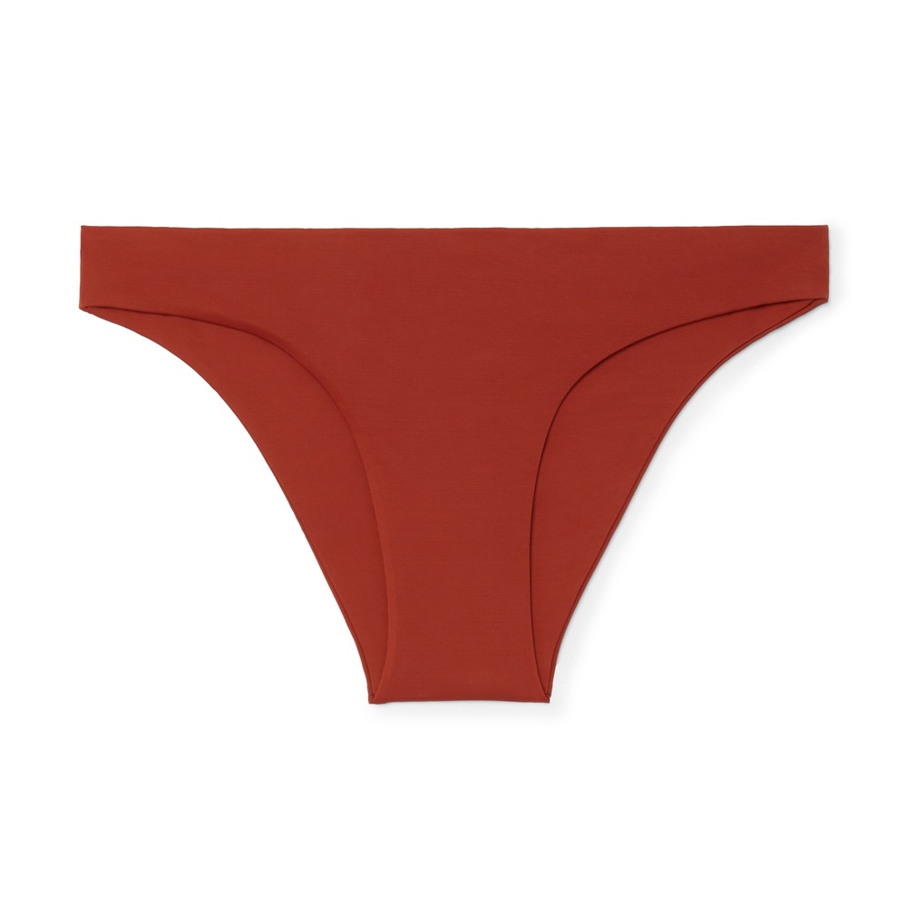 Haight Basic Bottoms in Bordeaux, X-Small: Basic in the best way, these bottoms sit low on the hips, offer moderate coverage, and have a sleek, seamless finish. They’re done in an OEKO-Tex-certified swim fabric that’s soft to the touch and offers high levels of sun protection (UPF 50+, to be precise).Which you can double down on with the coordinating top.87% polyamide, 13% elastane.