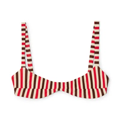 Lola Top in 70S Stripes, Medium: This bikini top has wide-set straps, sculpting seams, and a curved underband that gives it shape. It’s done in stretchy, self-lined swim fabric, in playful stripes of cream, cocoa, and red. Don’t forget to grab the matching bottoms.75% polyamide, 25% elastane.