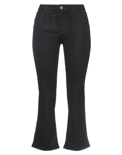 denim, coated effect, brand logo, solid color, colored wash, mid rise, flared cut, regular fit, zipper closure, button closing, multipockets, stretch, flare & wide-leg , Color: Black , Size: 29