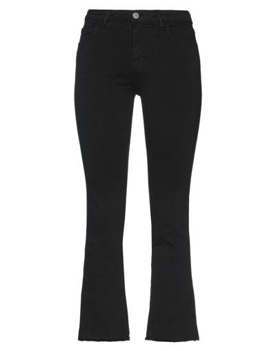 denim, logo, basic solid color, colored wash, mid rise, front closure, button, zip, multipockets, fringed hem, stretch , Color: Black , Size: 26