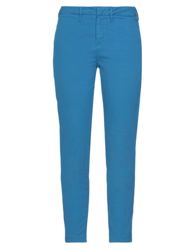 plain weave, solid color, mid rise, tapered leg, slim-leg pants, multipockets, stretch, brand logo, belt loops, hook-and-eye closure, zipper closure , Color: Azure , Size: 27