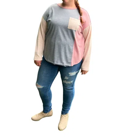 HAILEY & CO Plus Sized Color Block Long Sleeve In Grey And Pink In Multi