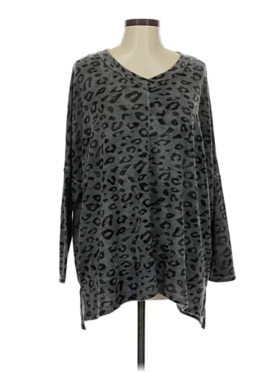 Hailey & Co. Pullover Sweater, Size: Medium. Item Details: Gray, Animal Print Pattern, V Neck, Long Sleeve, Women's Tops