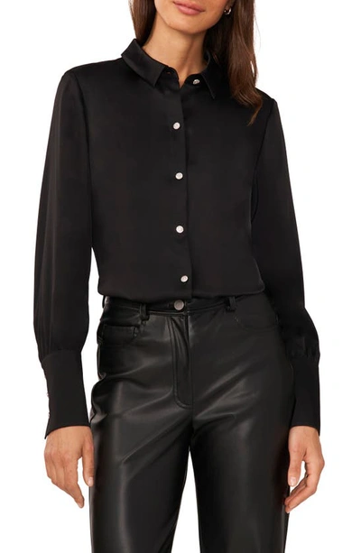 Shiny buttons fall down the front of this smart blouse framed by roomy long sleeves. 26" length (size Medium) Point collar Long sleeves with button cuffs 100% polyester Machine wash, tumble dry Imported