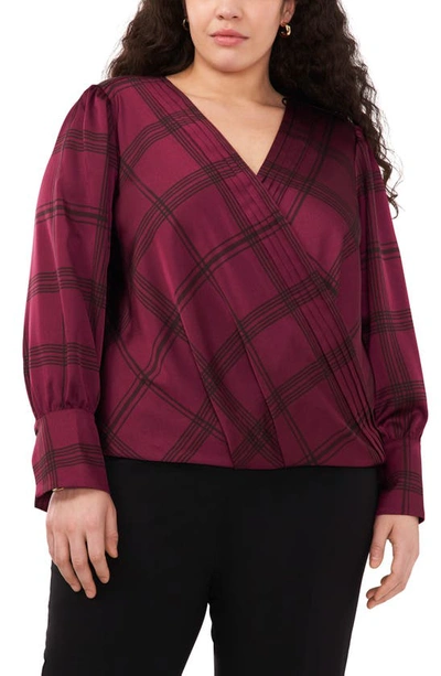 HALOGEN Check Print Faux Wrap Top In Grape Wine