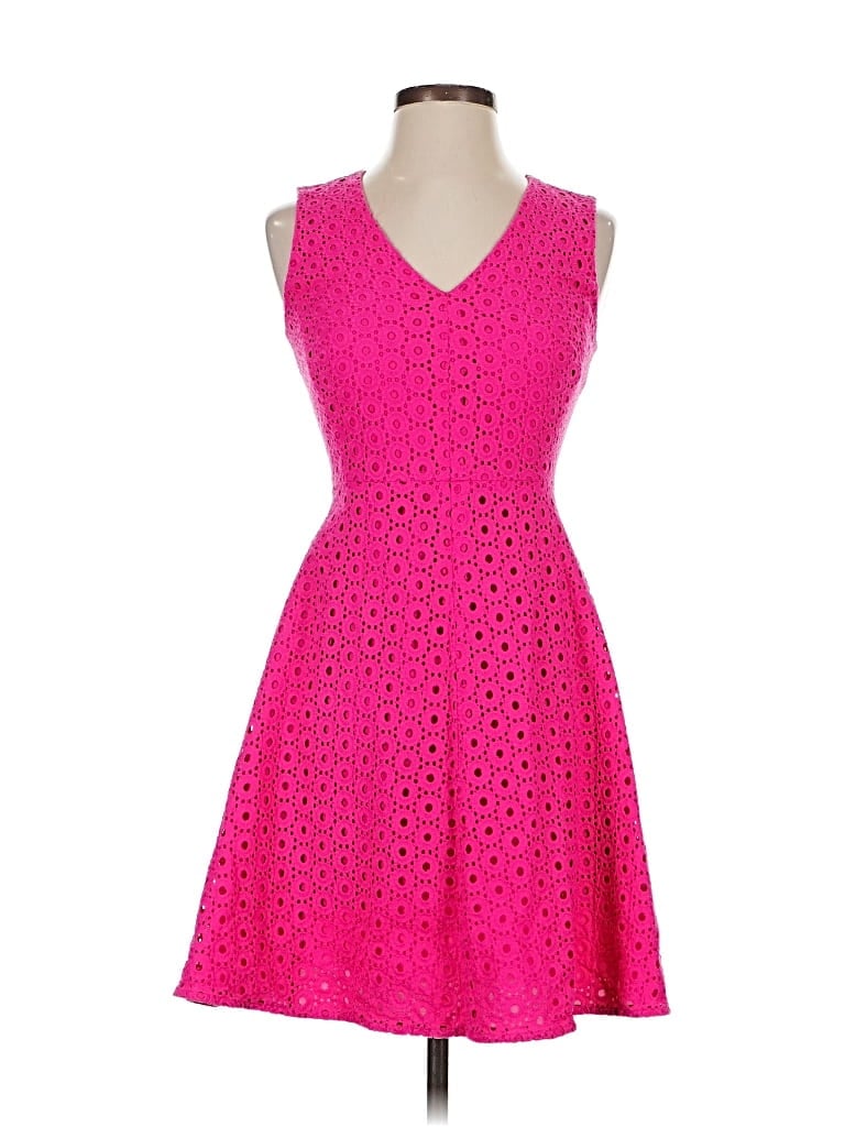 Halogen Cocktail Dress, Size: 0. Item Details: Pink, Hearts Pattern, Fit & Flare, V Neck, Short Length, Sleeveless, Cut Outs, Women's Dresses, 100% Cotton