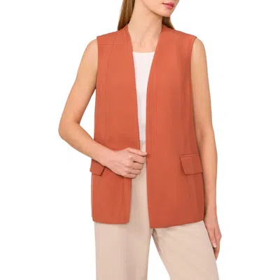 A polished longline vest is designed with an open front for endless layering possibilities and finished with an airy back vent for easy movement. 28" length Open front Decorative pocket flaps 92% rayon, 8% polyester Machine wash, tumble dry Imported