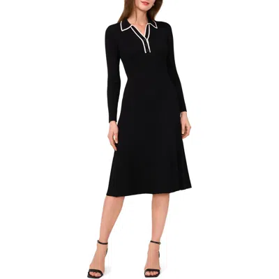 HALOGEN ® Contrast Trim Long Sleeve Sweater Dres In Rich Black