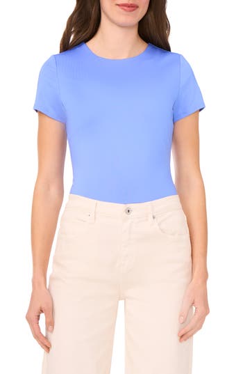 This sleek and classic T-shirt is cut from ultrastretchy body-sculpting fabric to enhance your natural shape. 23 1/2" length (size Medium) Jewel neck Short sleeves Partially lined 90% polyester, 10% spandex Machine wash, tumble dry Imported
