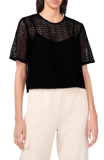 HALOGEN ® Geometric Openwork T-shirt In Rich Black