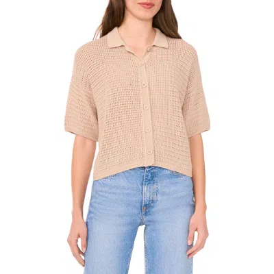 HALOGEN ® Open Stitch Button-up Polo Sweater In Neutral