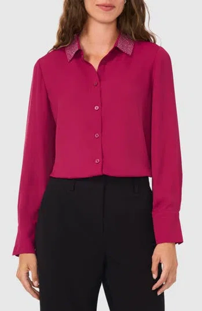HALOGEN ® Rhinestone Accent Button-up Shirt In Raspberry