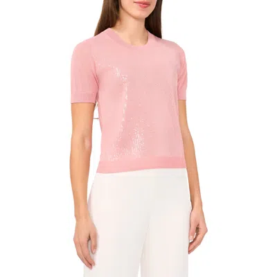 Glittery sequins give night-out appeal to this elevated sweater framed by abbreviated sleeves. Crewneck Short sleeves 88% viscose, 12% nylon Hand wash, dry flat Imported