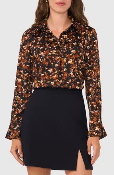 ® Split Cuff Button-up Top In Rich Black Print