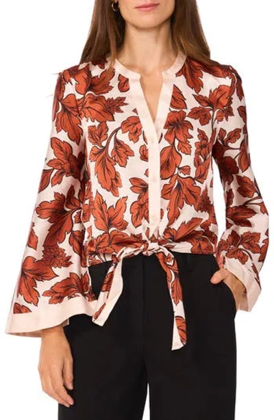 HALOGEN ® Stripe Bell Sleeve Tie Front Button-up Top In Almond Peach