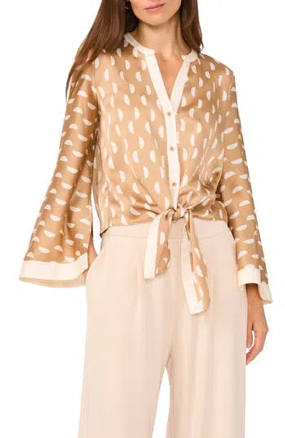 HALOGEN ® Stripe Bell Sleeve Tie Front Button-up Top In Pecan