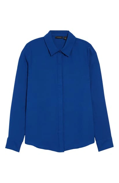HALOGENR Halogen Hidden Button Long Sleeve Blouse In Blue Monaco