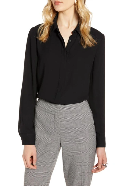 HALOGENR Hidden Button Long Sleeve Blouse In Black