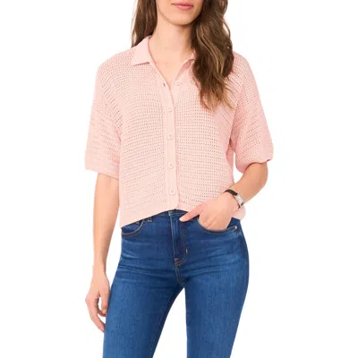HALOGENR Halogen(r) Open Stitch Button-up Polo Sweater