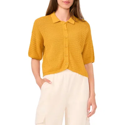 HALOGENR Halogen(r) Open Stitch Button-up Polo Sweater In Golden Spice Brown