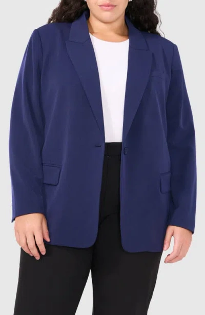 An oversized fit shapes this one-button blazer crafted with plenty of stretch to keep you moving. 29" length (size 18W) One-button closure Notched lapels Front flap pockets Lined Polyester/rayon/spandex Dry clean or machine wash, tumble dry Imported