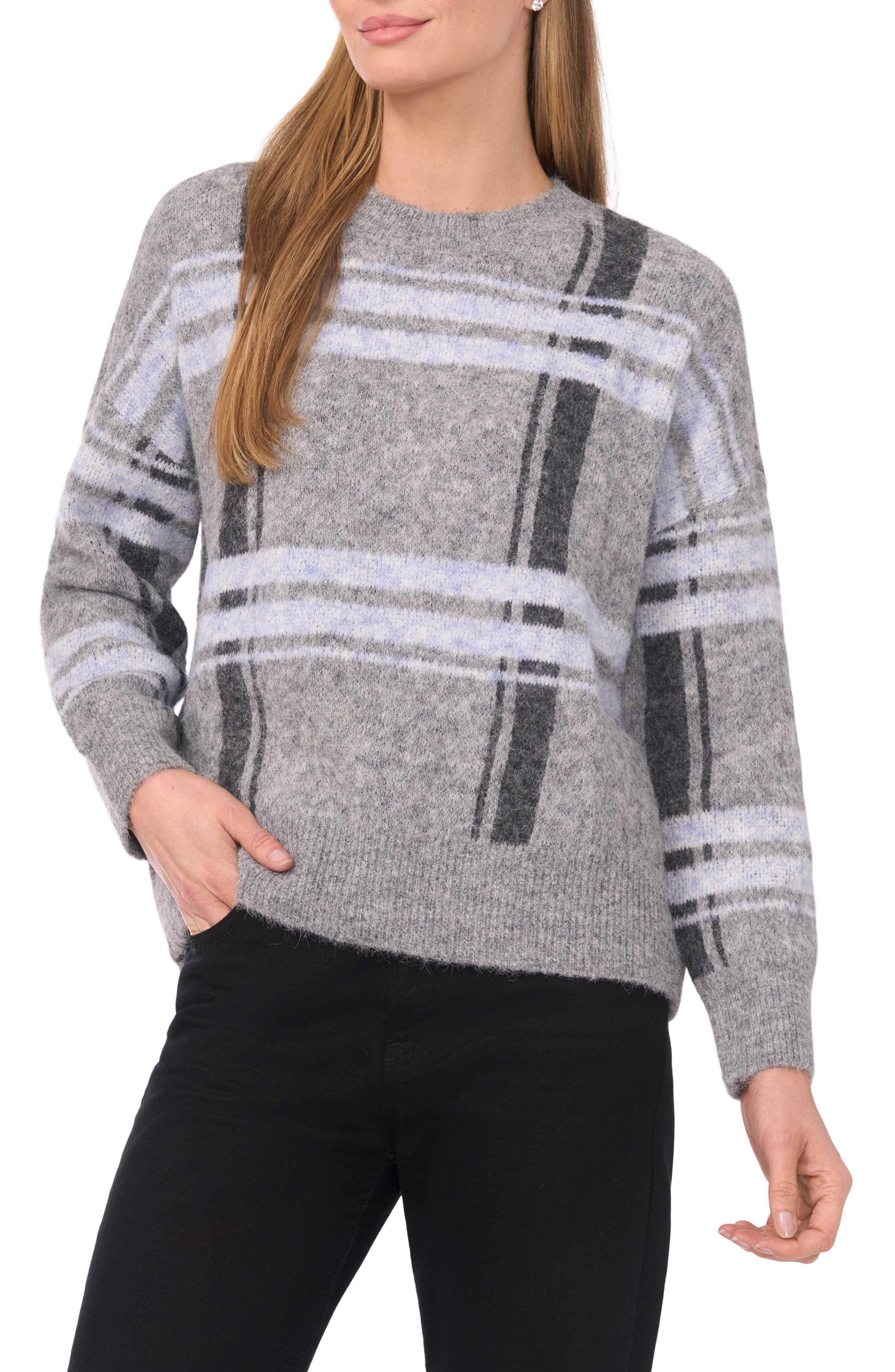HALOGENR Halogen(r) Plaid Jacquard Crewneck Sweater In Gray