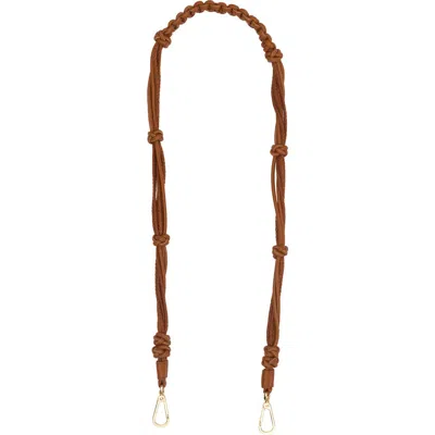 Knots and twists accent this rich leather strap framed by a pair of carabiner clips for easy attachment to your favorite bags. Leather/textile Imported