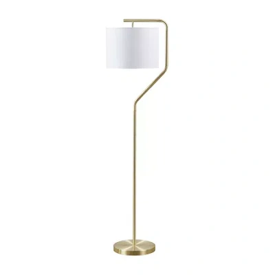 Brighten the dark corners of your living room with the Hampton Hill Aster Angular Arched Metal Floor Lamp. Featuring a slender, angular metal stand and gold base, this floor lamp comes with a linen drum-shaped shade that filters the light for a soft warm glow. A clear cord rounds out the simple transitional design to easily complement and illuminate your space. Use one Type A, 9W LED light bulb (Included)Angular metal stand in a gold finish13.5" drum shaped shade in whiteOn/off foot switch in-line. Plug-in, 72" clear colored cord.1 Type A, 9W LED light bulb is includedNot dimmable; Polarized plugHandle with care, spot clean only Included: 1 Lamp Shade(s), 1 Lamp Base(s)Light Bulb Base: E26 Medium (standard)Light Bulb Shape Code: A19Light Bulb Type: LedNumber of Light Bulbs: 1Power Source: Plug-InShape: DrumSwitch Type: On/Off SwitchUl Location Rating: DryWattage (watts): 9wMeasurements: 15.75 Depth/Inches, 13.5 Width/Inches, 60 Height/InchesCord Length (ft.): 6 FtBottom Diameter: 13 1/2 InTop Diameter: 13 1/2 InShade Height: 10 InWeight (lb.): 12.5 LbAssembly: Assembly RequiredBase Material: 100% MetalFinish: Satin GoldShade Material: PolyesterCare: Wipe CleanCertifications And Listings: Ul Listed, Etl ListedMaterial: MetalCa Special Bulbs: IncludedCountry of Origin: Imported